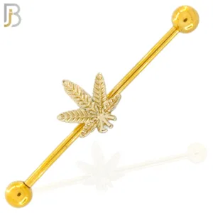 BB18 – 316L Surgical Steel Screw Bar Marijuana Leaf Design Barbell Industrial (PACK OF 6)