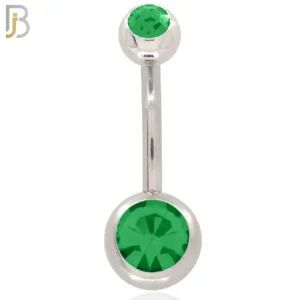 NB01SE – 316L Stainless Steel Double Gem Bezel Set Emerald Zircon Plain Banana Belly Navel Ring (PACK OF 6)