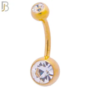 NB01GC – 316L Stainless Steel Gold Plated Double Gem Bezel Set Clear Zircon Plain Banana Belly Navel Ring (PACK OF 6)
