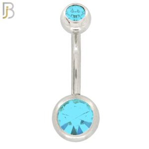NB01SAQ – 316L Stainless Steel Double Gem Bezel Set Aqua Zircon Plain Banana Belly Navel Ring (PACK OF 6)