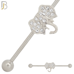 BB34 – 316L Surgical Steel Screw Bar with Alloy Elephant CZ Design Barbell Industrial (PACK OF 6)