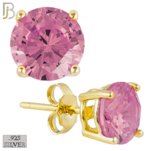 ES71-GP – .925 Sterling Silver Gold Plated Earring Stud Casting Round Prong Setting Pink Zircon