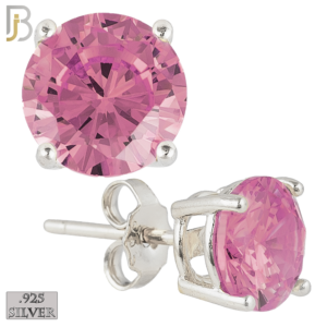 ES71-SP – .925 Sterling Silver Rhodium Plated Earring Stud Casting Round Prong Setting Pink Zircon