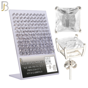 PK-ES72-KC – 925 Sterling Silver Black Plated Push Back Earring Stud Casting Square Prong Setting Clear Zircon Pack of 120