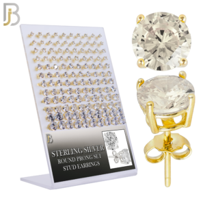 PK-ES71-GC-925 Sterling Silver Gold Plated Push Back Earring Stud Casting Round Prong Setting Clear Zircon Pack of 120