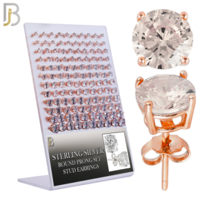 PK-ES71-RC- .925 Sterling Silver Rose Gold Plated Push Back Earring Stud Casting Round Prong Setting Clear Zircon Pack of 120