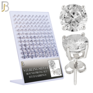 PK-ES71-SC- .925 Sterling Silver Stud Earrings with Round CZ in Prong Setting