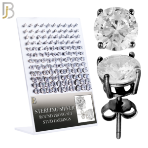 PK-ES71-KC- 925 Sterling Silver Black Plated Push Back Earring Stud Casting Round Prong Setting Clear Zircon Pack of 120