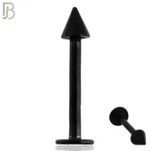 LB02K – 316L Surgical Steel Black Plated Plain Labret Screw Spike External Threaded (PACK OF 6)