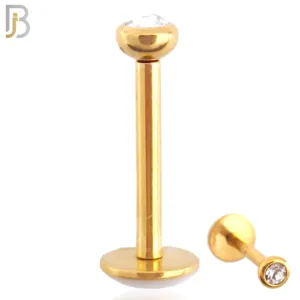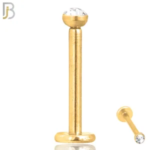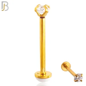 LB14GC16 – 16g 316L Surgical Steel Gold Plated Bar Prong Setting Zircon Internally Threaded Labret (PACK OF 6)