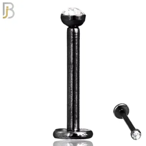 LB14KC16 – 16g Thickness 316L Surgical Steel Black Plated Bar Prong Setting Zircon Internally Threaded Labret (PACK OF 6)