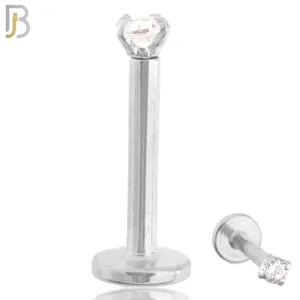 LB17S16 – 16g Thickness 316L Surgical Steel Prong Setting Round Push In Zircon Labret (PACK OF 6)