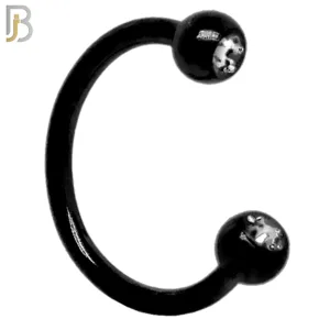 HS05K – 316L Surgical Steel Black Plated Horseshoe with Double Gem Screw Ball External Threaded (PACK OF 6)
