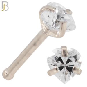 NR42B – 316L Surgical Steel Nose Bone with 3mm Heart Shaped Clear Zircon in Three Prong Setting (PACK OF 6)