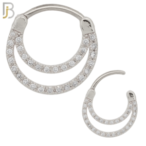 CT76 – 316 Surgical Steel Double Row Zircon Nose Clicker for Septum Piercing (PACK OF 6)