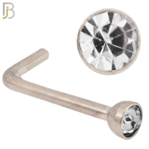 NR36L – 316L Surgical Steel L Shape with 2mm Bezel Setting Round Clear Zircon (PACK OF 6)