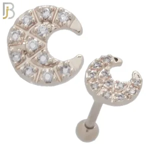 TB38 – 316L Stainless Steel and Brass Half Moon with Zircon Design Tragus Barbell Cartilage Piercing Screw Ball (PACK OF 6)