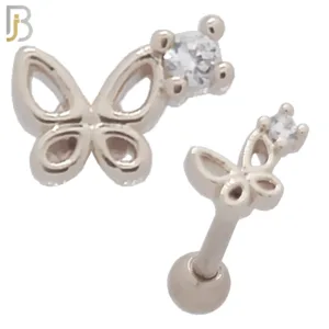 TB39 – 316L Stainless Steel and Brass Butterfly with Small Round Zircon Design Tragus Barbell Cartilage Piercing Screw Ball (PACK OF 6)