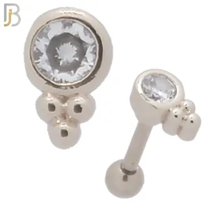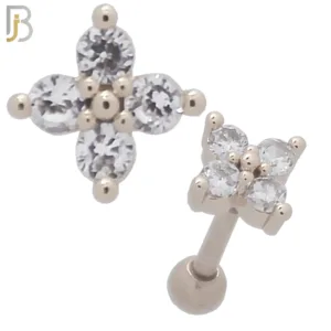TB40 – 316L Stainless Steel and Brass Four Round Clear Zircon Design Tragus Barbell Cartilage Piercing Screw Ball (PACK OF 6)