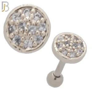 TB42 – 316L Stainless Steel and Brass Mini Disc with Zircon Design Tragus Barbell Cartilage Piercing Screw Ball (PACK OF 6)