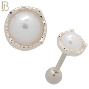 TB45 – 316L Stainless Steel Synthetic Pearl Design Tragus Barbell Cartilage Piercing Screw Ball (PACK OF 6)