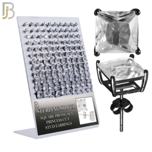 PK-ES72-KC – 925 Sterling Silver Black Plated Push Back Earring Stud Casting Square Prong Setting Clear Zircon Pack of 120