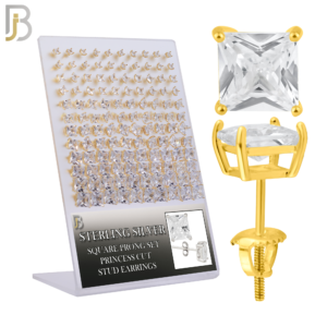 PK-ES80R-GC – 925 Sterling Silver Gold Plated Screw Back Earring Stud Casting Square Prong Setting Clear Zircon Pack of 120