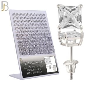 PK-ES80R-SC – 925 Sterling Silver Rhodium Plated Screw Back Earring Stud Casting Square Prong Setting Clear Zircon Pack of 120