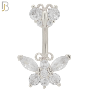 NB67 – 316L Stainless Steel Banana Belly Ring with Flower and Butterfly Cubic Zirconia