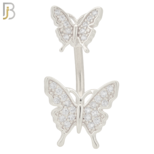 NB65 – 316L Stainless Steel Banana Belly Ring with Double Butterfly Shaped Cubic Zirconia