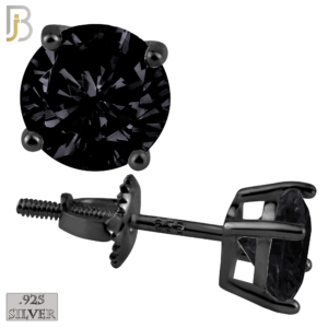 ES79-KK – .925 Sterling Silver Screw Back Stud Earrings Casting Prong Setting with Round Black Zircon