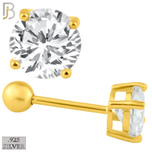 PK-ES311-GC – .925 Sterling Silver Earring Stud with Screw Ball Backing, Casting Prong Setting and Round Clear Zircon (Copy)