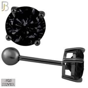 ES311-KK – .925 Sterling Silver Black Plated Screw Ball Back Stud Earrings Casting Prong Setting with Round Black Zircon