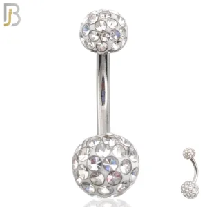 NB56 – 316L Stainless Steel Round Clear Zircon Banana Belly Navel Ring