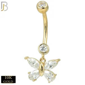 10-N001 – 10k Solid Gold Dangle Belly Ring with Butterfly Design