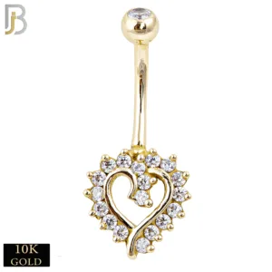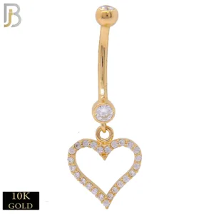 10-N002 – 10k Solid Gold Dangling Hollow Heart with Zircon Design Belly Ring