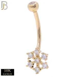 10-NB21 – 10k Solid Gold Banana Belly Ring with Snow Flake Design