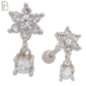 TB31 – 316L Surgical Steel Flower with Dangling Round Zircon Tragus Barbell Cartilage Piercing Screw Ball (PACK OF 6)