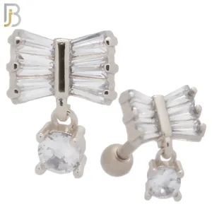 TB32 – 316L Surgical Steel Bow Design with Dangling Round Zircon Tragus Barbell Cartilage Piercing Screw Ball (PACK OF 6)