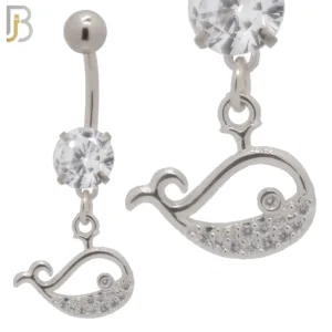 N087 – 316L Stainless Steel Dangling Blue Whale with CZ Belly Ring