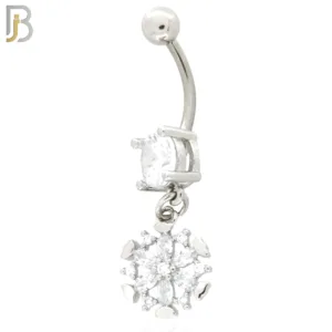 N017- 316L Stainless Steel Dangling Snowflakes Zircon Design Belly Ring with 5mm Screw Ball