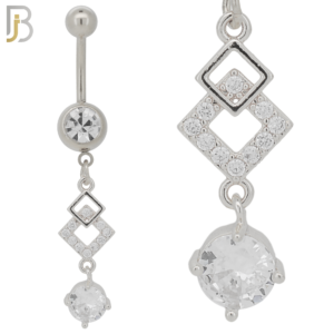 N025 – 316L Stainless Steel Dangling Diamond Shape with Prong Round Zircon Design Belly Ring with 5mm Screw Ball