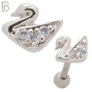 TB01 – 316L Surgical Steel Swan Design with Zircon Tragus Barbell Cartilage Piercing Screw Ball (PACK OF 6)