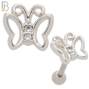 TB02 – 316L Surgical Steel Butterfly Design with Zircon Tragus Barbell Cartilage Piercing Screw Ball (PACK OF 6)
