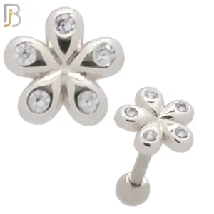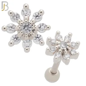 TB05 – 316L Surgical Steel Flower Design with Zircon Tragus Barbell Cartilage Piercing Screw Ball (PACK OF 6)