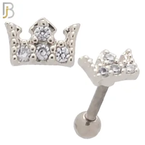 TB10 – 316L Surgical Steel Crown Design with Zircon Tragus Barbell Cartilage Piercing Screw Ball (PACK OF 6)