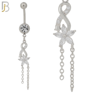 N030 – 316L Stainless Steel Dangling Infinity with Flower Zircon Design Belly Ring with 5mm Screw Ball