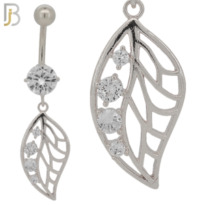 N023 – 316L Stainless Steel Dangling Leaf with Zircon Design Belly Ring with 5mm Screw Ball