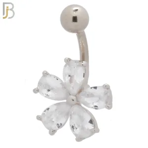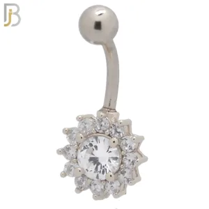 NB10 – 316L Stainless Steel Flower Zircon Banana Belly Navel Ring
