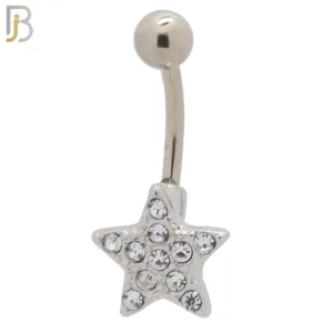 N014 – 316L Stainless Steel Dangling Star with Zircon Design Belly Ring with 5mm Screw Ball